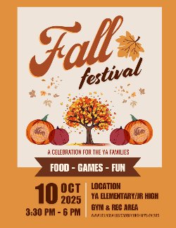 2025 Fall Festival is a celebration for all YA Families to enjoy food, games, and fun!
